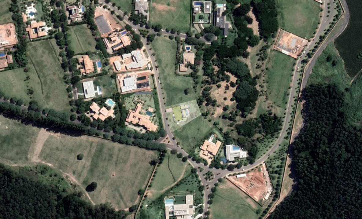 Localizada em São Paulo, a casa possui um aspecto interessante: a sua implantação. A residência fica em um belo terreno em declive, posicionada de costas para a rua e de frente para um bosque.