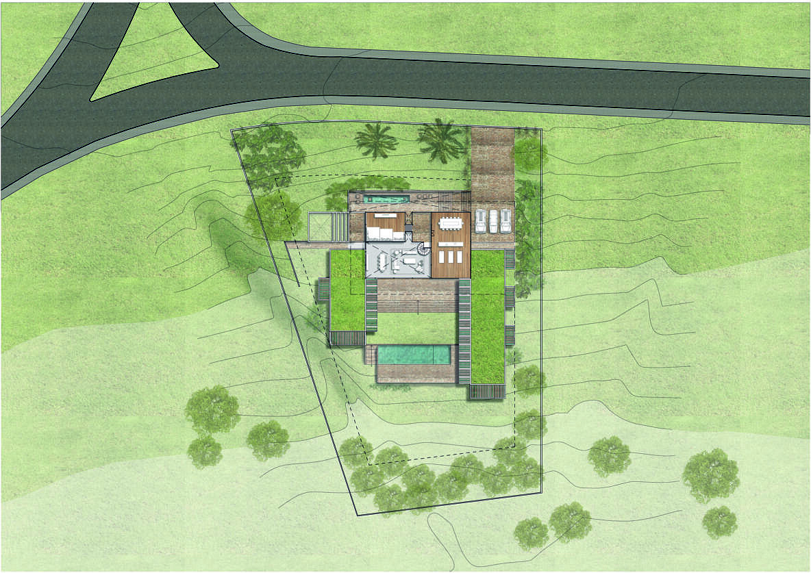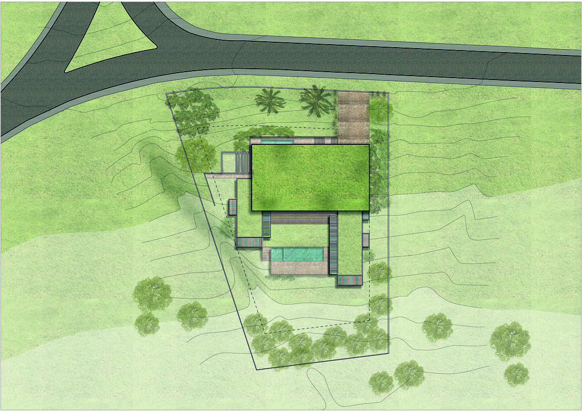 “Queríamos trazer a sensação de que o solo foi recortado e transformado em cobertura, assim integrando visualmente a residência com seu entorno.”