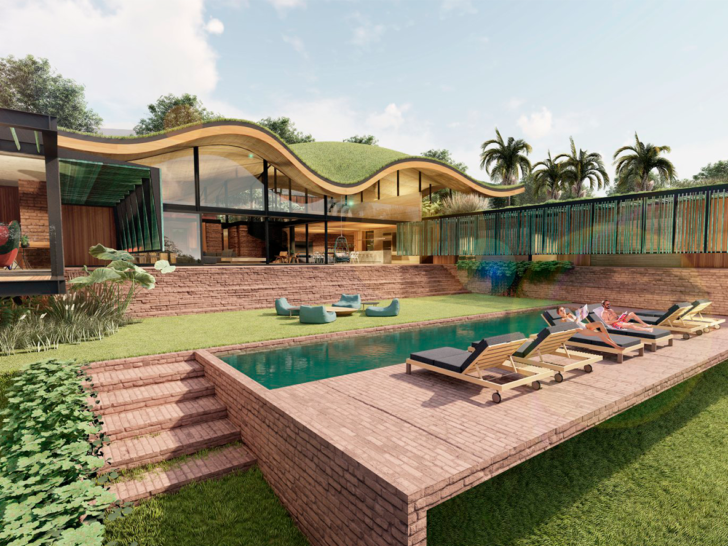 Propusemos uma disposição que facilita o acesso aos espaços coletivos da casa. No nível superior está a suíte master, no meio sala e cozinha, e no nível inferior as 3 suítes restantes. Com isso basta subir ou descer apenas um andar para estar na área social.