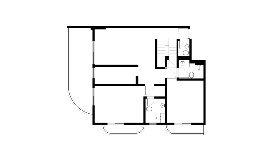 Apostamos também na integração de ambientes, especialmente no segundo andar. Este piso originalmente possuía uma varanda extremamente grande e um interior pequeno, então reduzimos um pouco a área externa para criar um espaço interno maior, integrado e aconchegante.