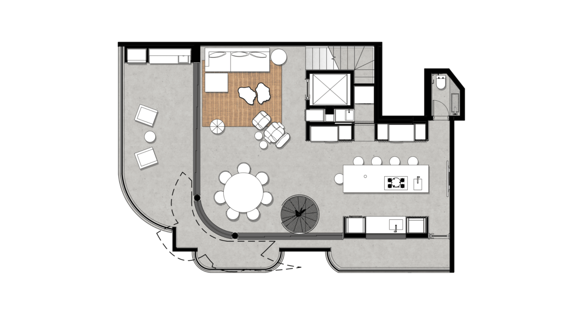Nós tivemos bastante liberdade criativa no projeto do Triplex Arpoador. O cliente, um jovem francês que estava em busca de um apartamento para investir no Rio, conheceu nosso trabalho e deu carta branca para reformar o triplex de 280 m² que havia comprado.